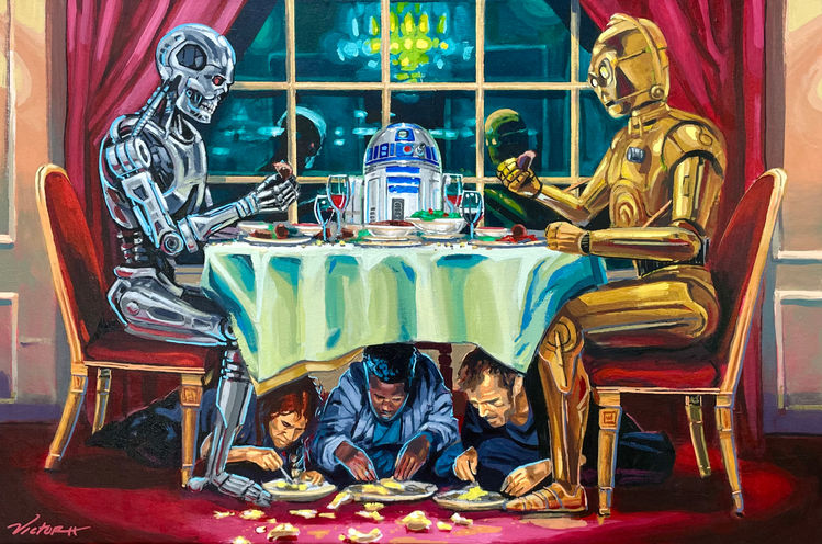 Victorres’ dark humor art lives at the intersection of nostalgia and critique, where pop culture collides with politics and sarcasm cuts through sentiment. His work channels the familiar—comic books, retro ads, childhood ephemera—only to twist it into something sharply observant and unsettling. With a style that’s both playful and pointed, Victorres explores the absurdities of modern life, turning humor into a tool for reflection, rebellion, and the occasional gut punch.
